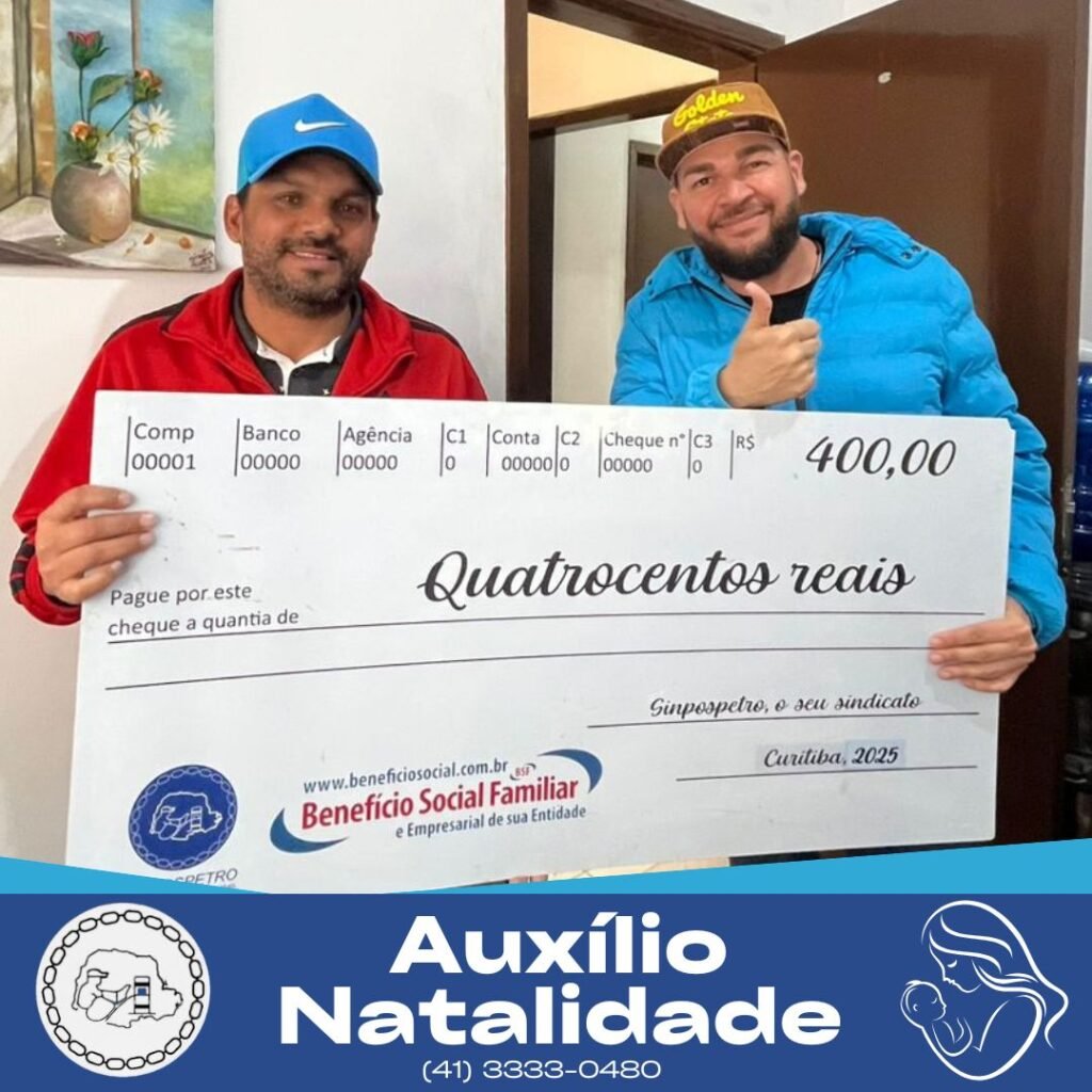 O Frentista Ivan Aurélio Rodrigues, do Posto Jardim Timbori, papai da Esther Vitoria, foi contemplado com o Auxílio Natalidade para ajudar nas despesas com a chegada da bebê! Ele recebeu o cheque no valor de R$ 400,00 (quatrocentos reais). da mãos do Presidente Sinpospetro Lairson Sena. O Auxílio Natalidade é uma conquista do sindicato consagrada […]